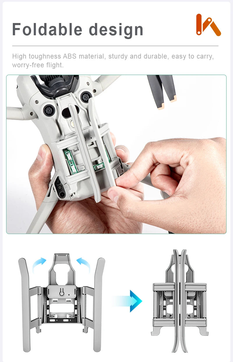 Lightweight & Foldable: Only 18.5 grams, will not affect the flight performance of the drone. High toughness ABS material, more durable while reducing weight. Foldable and non-destructive installation design, greatly improving portability
